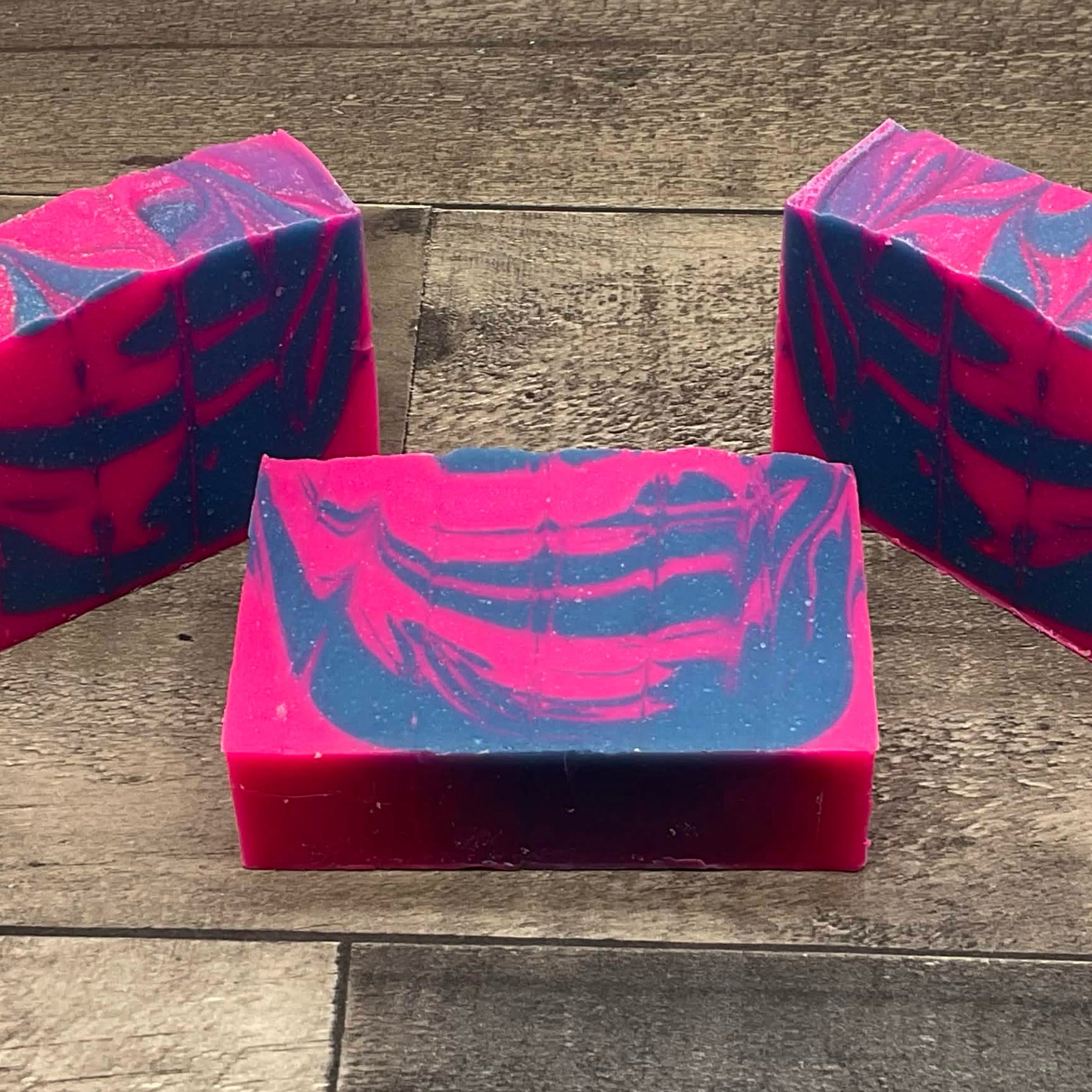 Wash your Würm! Blue and magenta mica powder swirled together with pumice for extra scrub.